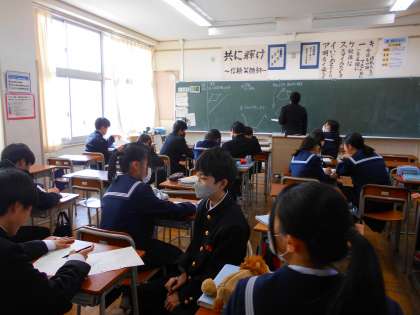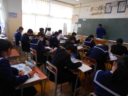 1年・授業風景 公開日 2024/02/14 更新日 2024/02/14 1学年 2月14日(水) 5限 第4回定期考査が近づいています。 1年生最後の定期考査に向けて頑張ろうという雰囲気が出てきています。 (写真 上:1年1組 理科「地震はなぜ起きるのか」) (写真 中:1年4組 社会 「蒙古襲来は鎌倉幕府にどんな影響を与えたのか」) (写真 下:1年5組 数学「テスト前の総復習」)