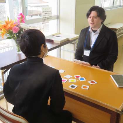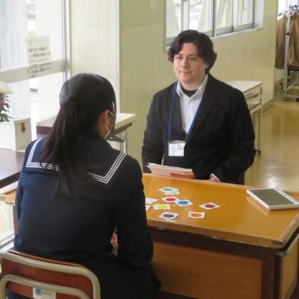 2年・英語・スピーキングテスト 公開日 2024/02/16 更新日 2024/02/16 2学年 2月16日(金) 4限 2年3組の英語は、廊下でスピーキングテストをしていました。 ALTとテンポよく会話している姿に成長を感じました。