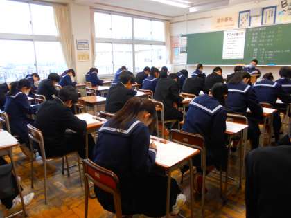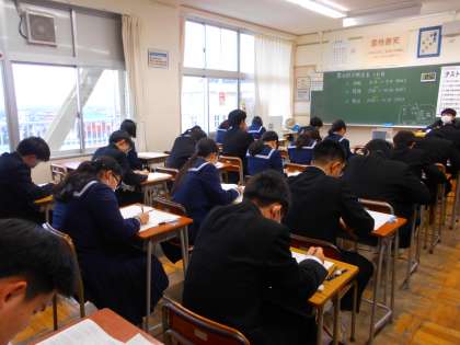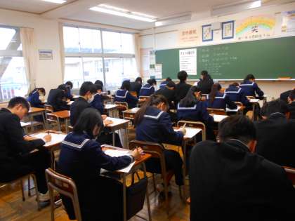 3年・第4回 定期考査・1日目・その1 公開日 2024/02/20 更新日 2024/02/20 3学年 2月20日(火) 1限 社会 いよいよ第4回 定期考査が始まりました。 3年生にとっては、山中生活最後の定期考査になります。 (写真 上:3年1組 中:3年2組 下:3年3組)