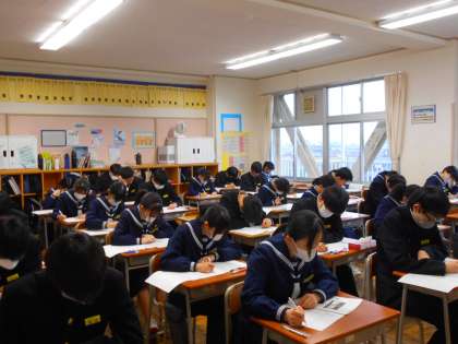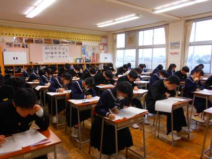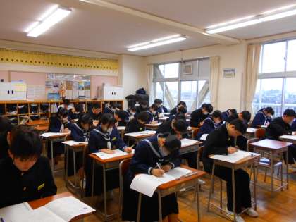 3年・第4回 定期考査・2日目 公開日 2024/02/21 更新日 2024/02/21 3学年 2月21日(水) 1限 英語 「第4回 定期考査」2日目を迎えました。 入試を控えた3年生にとっては、力を試せるチャンスです。 (写真 上:3年1組 中:3年3組 下:3年5組)