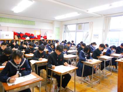 1年・第4回 定期考査・2日目 公開日 2024/02/21 更新日 2024/02/21 1学年 2月21日(水) 1限 美術 「第4回 定期考査」2日目を迎えました。 1年生は、与えられた時間の中で、一生懸命問題に取り組んでいます。 (写真 上:1年1組 中:1年3組 下:1年5組)