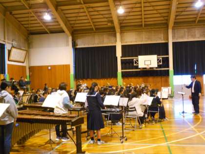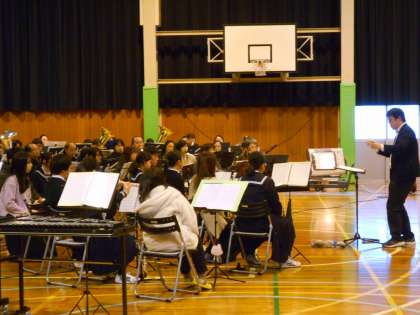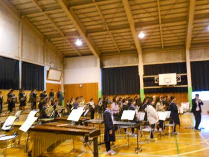 やまむろ町の音楽会・その7 公開日 2024/02/25 更新日 2024/02/25 部活動 2月25日(日) 14:00 最後は、山室小学校管楽器クラブ・山室中学校吹奏楽部・管楽器クラブOBOG・山室中学校吹奏楽部・小中学生保護者による「合同演奏」です。 参加人数は総勢80名ほど、大迫力の演奏です! 演奏曲は、「となりのトトロ〜コンサートバンドのためのセレクション〜」「情熱大陸コレクション」です。