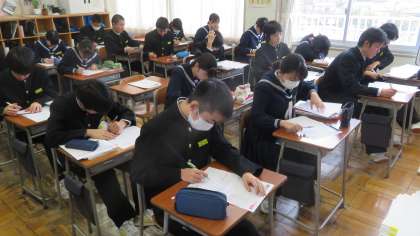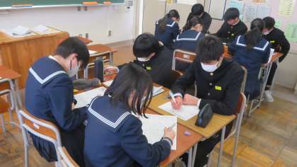 3年・授業風景 公開日 2024/02/26 更新日 2024/02/26 3学年 2月26日(月) 3限 県立高校一般選抜まで、あと10日となりました。 5教科の授業では、3年間のまとめプリントを使って、問題演習を繰り返しています。 体調管理も含めて万全な状態で臨むことができるよう、ラストスパートをかけましょう! (写真 上:3年1組 数学) (写真 中:3年2組 理科) (写真 下:3年3組 社会)