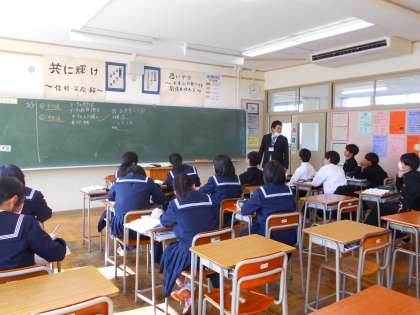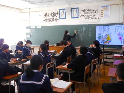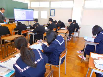 (写真 中:1年3組 数学「度数の異なる資料を比べてみよう」)
