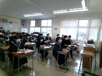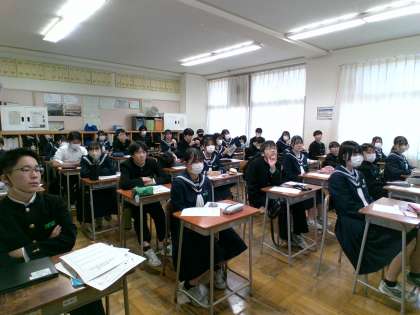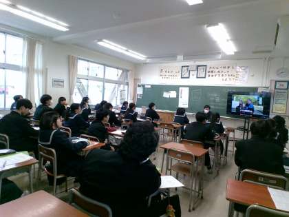 2年・平和学習・4回目 公開日 2024/02/27 更新日 2024/02/27 2学年 2月26日(金) 6限 2年生は平和学習の4回目として、広島平和記念資料館の設立目的と展示内容について学びました。 写真は資料館を訪れた外国人のインタビューを見ている様子です。 (写真 上:2年1組 中:2年2組 下:2年3組)