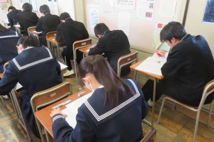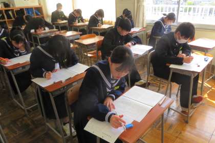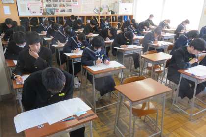 来週7日(木)、8日(金)に行われる県立高校一般選抜を想定して、真剣に取り組んでいる3年2組の様子です。