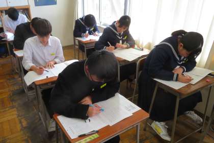 3年・最後のテスト「第7回 実力テスト」・4組 公開日 2024/02/29 更新日 2024/02/29 3学年 2月29日(木) 2限 国語 3年生は、山室中学校での最後のテスト「第7回 実力テスト」をしています。 (1限:社会、2限:国語、3限:理科、4限:英語、5限:数学) 来週7日(木)、8日(金)に行われる県立高校一般選抜を想定して、真剣に取り組んでいる3年4組の様子です。