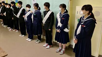今朝から令和6年度前期生徒会役員選挙運動が始まりました。