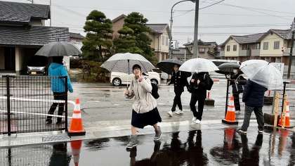 「交差点口(交差点近くに新しくできた通用口のこと)」から自転車通学生、徒歩通学生が続々と入ってきました。