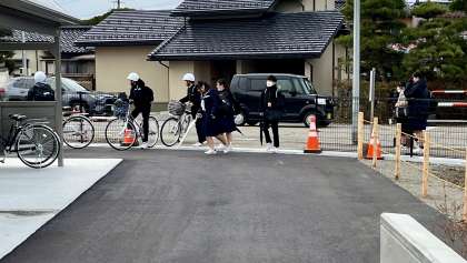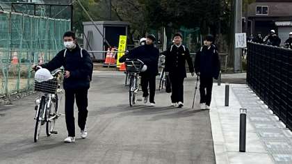 朝の登校風景・その3 公開日 2024/03/05 更新日 2024/03/05 山室中学校のページ 3月5日(火) 7:55 生徒が元気に登校してきました。 (写真 上、中:交差点口から入る生徒の様子) (写真 下:南門から入る生徒の様子)