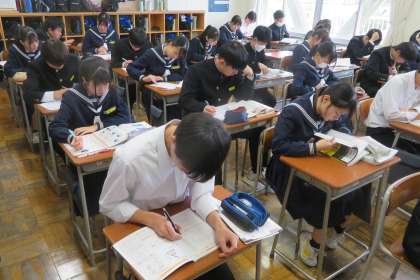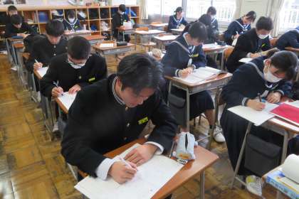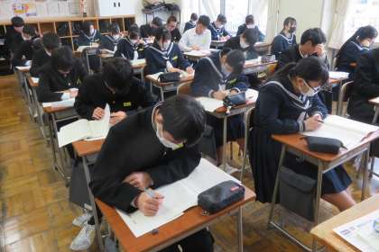 3年・授業風景 公開日 2024/03/06 更新日 2024/03/06 3学年 3月6日(水) 3限 3年生は、いよいよ明日から県立高校一般選抜です。 どのクラスも、3年間の学習のまとめとして、プリントをしたり、ワークを見直したり、復習に余念がありません。 (写真 上:3年2組 中:3年3組 下:3年4組)
