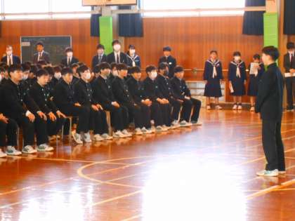 1,2年・合同式歌練習・その2 公開日 2024/03/07 更新日 2024/03/07 山室中学校のページ 3月7日(木) 2限 3月14日(木)に行われる第77回卒業証書授与式に向けて、式歌練習を行いました。 まずは、在校生の合唱「絆」の練習です。 生徒が主体となって、互いに気持ちを高め、アドバイスをし合い、歌声がどんどん磨かれていきます。