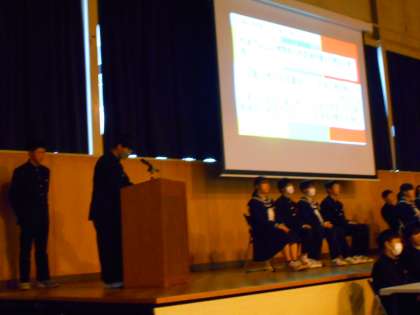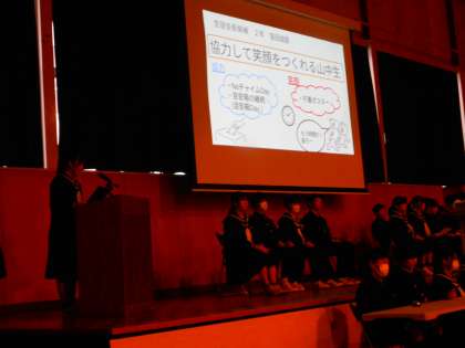 3月8日(金) 5、6限 後期生徒会役員選挙・立会演説会の演説の様子です。