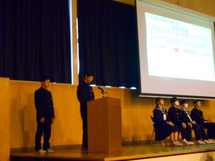 後期生徒会役員選挙・立会演説会の演説の様子です。