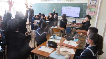 (写真 中:1年3組 社会「オセアニア州の気候」)