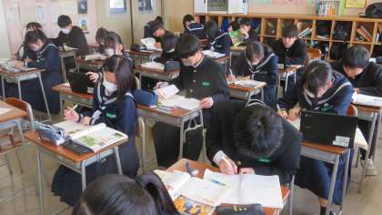 (写真 下:2年4組 家庭科「住まいの中にある危険」)