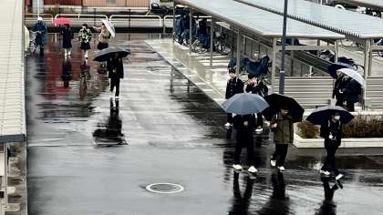朝の登校風景 公開日 2024/03/12 更新日 2024/03/12 山室中学校のページ 3月12日(火) 8:00 気温は7度、雨が降り続いて、ヒンヤリしています。 体調管理に十分気を付けましょう! (ちょっとインフルエンザB型が流行ってきています。)