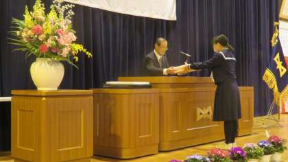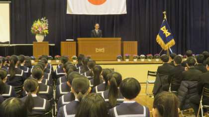 3年・学年集会のあと、「同窓会入会式」を行いました。