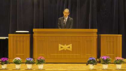 (写真 中、下:馬渡同窓会会長の挨拶)