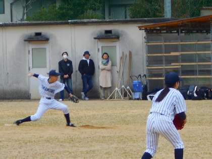 3月17日(日)の部活動・その1 公開日 2024/03/17 更新日 2024/03/17 部活動 3月17日(日) 10:00 野球部がグラウンドで活動しています。 今日は、藤ノ木中と練習試合です。 風もあり、よい天候とはいえませんが、はつらつとプレーしています。