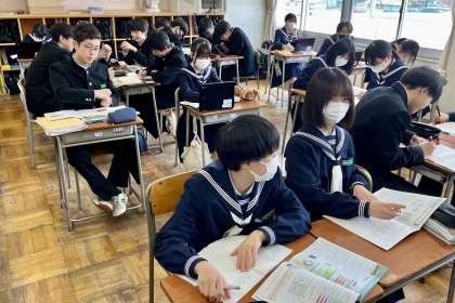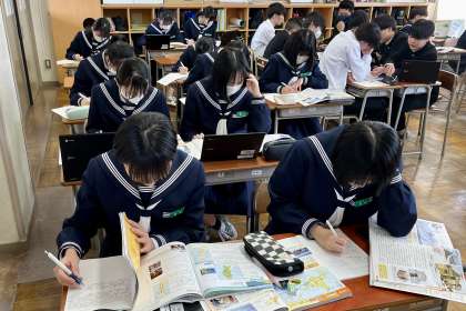 教科書、資料集やクロムブックを活用して、まとめています。