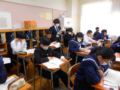 国語では、先生のおすすめの文章を全員で読んでいます。