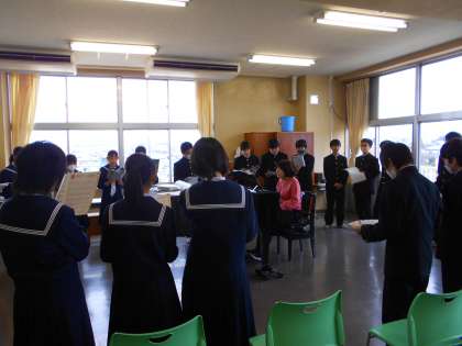 (写真 下:1年5組 音楽「上を向いて歩こう」)