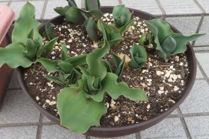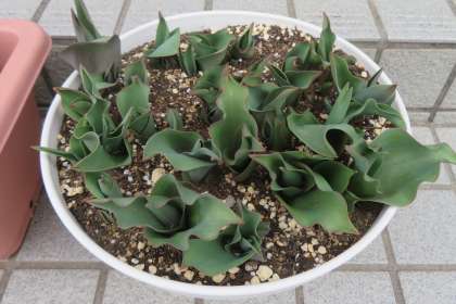 3月19日(火) 15:00 生徒玄関のチューリップのプランターです。 いつ咲くのか楽しみです!
