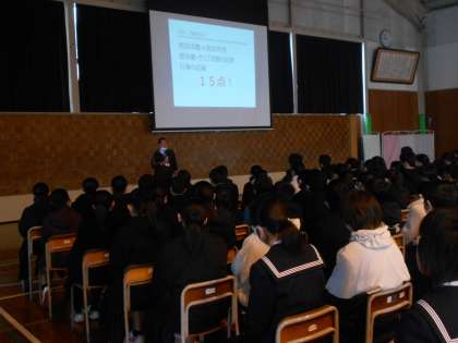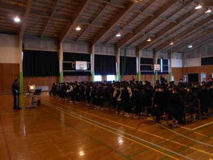 1年は最後の学年集会で、2年生へ向けての学習について説明がありました。