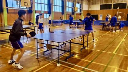 3月26日(火) 10:00 卓球部が活動をしています。 ラリーが続いていますね!