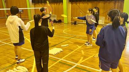 女子は、バックプッシュの打ち方から確認をして練習をしています。