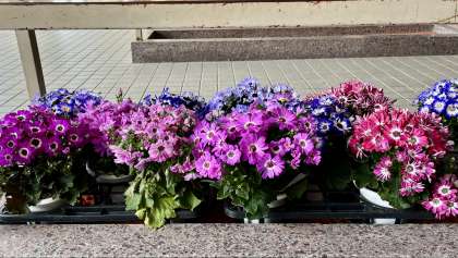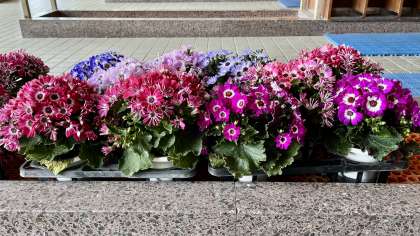 春に誘われて……その2 公開日 2024/04/01 更新日 2024/04/01 山室中学校のページ 4月1日(月) 1400 卒業式で会場に華を添えたサイネリアの鉢植えは、生徒玄関内でスタンバイしています。 ほぼ満開状態です。 4月5日(金)の入学式までもってほしいですね!