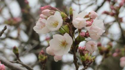 (開花宣言の規準は、5輪から6輪以上の花が咲くことです。)