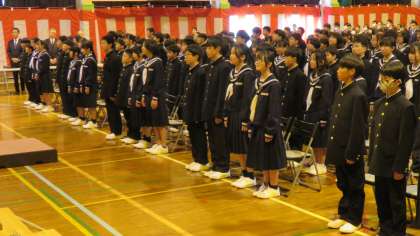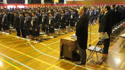 4月5日(金) 「国歌斉唱」 4年ぶりに、1,2,3年生が全員揃った入学式がスタートしました。