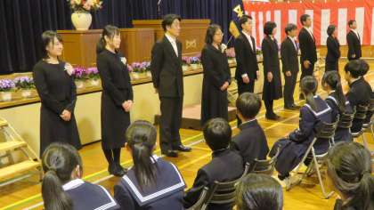 4月5日(金) 「1学年担当者紹介」 入学式が終わり、第1学年スタッフが紹介されました。