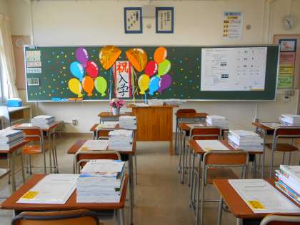 教室も待っています! 公開日 2024/04/05 更新日 2024/04/05 山室中学校のページ 4月5日(金) 11:00 1年生教室の準備も万端です。 (2年生が手際よくじゅんびしてくれました。ありがとう!) クラス毎に異なる祝画となっています。 どの教室に入るかお楽しみに!