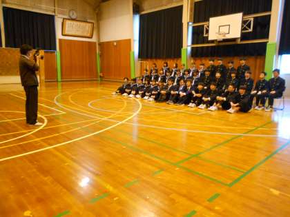 クラス写真撮影 公開日 2024/04/09 更新日 2024/04/09 山室中学校のページ 4月9日(火) 4限 全クラス、順次、体育館に集まり、クラス写真を撮影しました。 真顔、笑顔、ポーズありの3パターンで撮りました。
