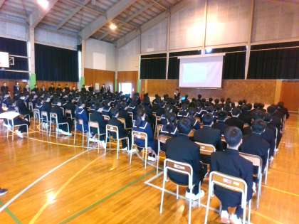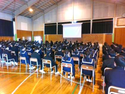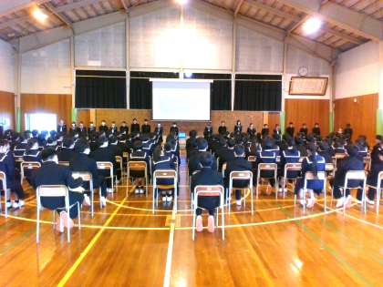 体育館で生徒会入会式・部活動紹介がありました。