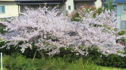 校舎北側(東館北側)の山室中サクラは、満開です。