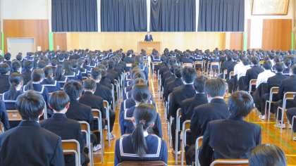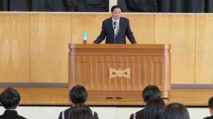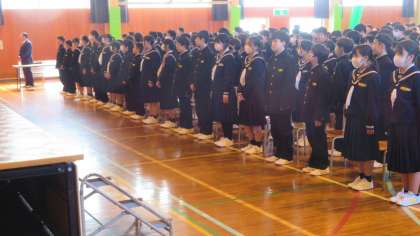 創校記念式 公開日 2024/04/12 更新日 2024/04/12 山室中学校のページ 4月12日(金) 5限 全校生徒が体育館に集まり、創校記念式を行いました。 今回は、富山県議会議員の中川忠昭氏(本校卒業生、本校後援会顧問)に、「日本が真価を発揮するとき 〜山中から学んだこと〜」と題して記念講演をしていただきました。(写真:上、中) 生徒は真剣に聴いていました。 (写真 下:最後に校歌を斉唱しました。)