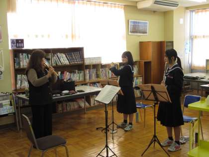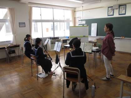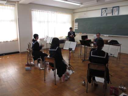 4月13日(土) 10:00 吹奏楽部は、それぞれの楽器ごとに講師のレッスンを受けています。