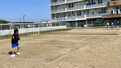 テニスコートでは、女子ソフトテニス部が活動しています。