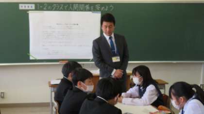 4月20日(土) 5限 1年2組 学活(岸本先生)「人間関係づくり」