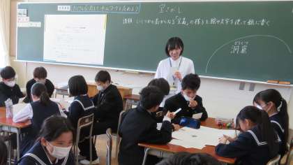 4月20日(土) 5限 1年4組 学活(五本先生)「人間関係づくり」