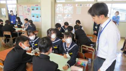 4月20日(土) 5限 1年5組 学活(宍戸先生)「人間関係づくり」
