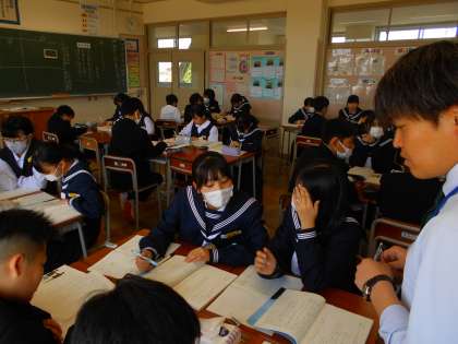 1年・授業風景 公開日 2024/04/20 更新日 2024/04/20 1学年 4月20日(土) 2限 今週6日目ではありますが、集中しています。 (写真 上:1年1組 社会) (写真 中:1年2組 英語・少人数授業) (写真 下:1年5組 国語)