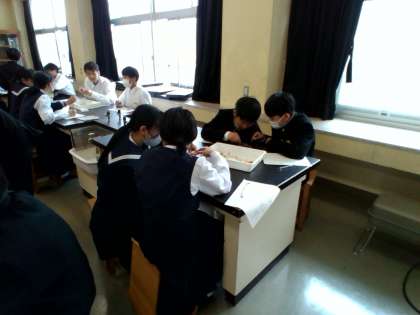 1年生の理科は、エビとイワシのからだのつくりを観察しました。