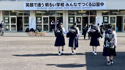 朝の登校風景 公開日 2024/04/26 更新日 2024/04/26 山室中学校のページ 4月26日(金) 8:00 気温は18度、天気は晴れ。 高気圧におおわれ、日差しが届きます。 (昼には昼は汗ばむような体感になりそうです。) 生徒が元気に登校してきました。(写真) 寒暖差に注意して、服装で調節しましょう!