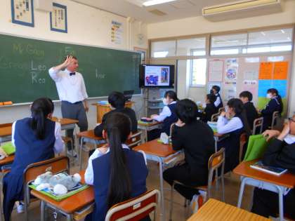 4月26日(金) 2限 1年2組は、英語の少人数授業です。 ALTの先生と楽しく会話をしていました。