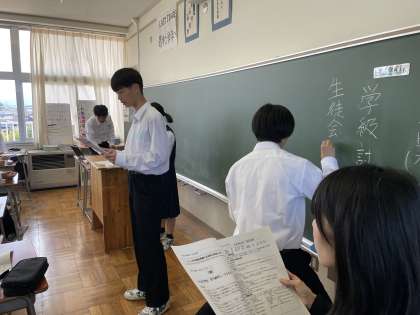 3年・生徒総会に向けた学級討議 公開日 2024/05/02 更新日 2024/05/02 3学年 5月2日(木) 6限 3年生は、10日(金)の生徒総会に向けて学級討議をしました。 最高学年にふさわしく、どのクラスでも活発な意見交換が行われました。